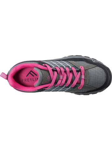 – im Bereich der Ferse verstärkt – bestmöglicher Halt dank rutschhemmender, profilierter Laufsohle – ideales Schuhpaar für WanderausflügeStabile Begleiter für die Fortbewegung im Freien: Die funktionalen Wanderschuhe der Marke Freyling. Das Obermaterial aus einem Materialmix aus Synthetik zeigt sich strapazierfähig und ebenso ansprechend. Ein angenehmer Sitz ist dank des Schnürverschlusses möglich.Verschluss: SchnürverschlussAbsatzart: FlachAbsatzhöhe: 1 cmSchuhweite: FSportart: WandernObermaterial: Sonstiges Material (Materialmix aus Synthetik)Futter: Textil (Textil)Decksohle: Textil (Mesh)Laufsohle: Sonstiges Material (TPR-Sohle)